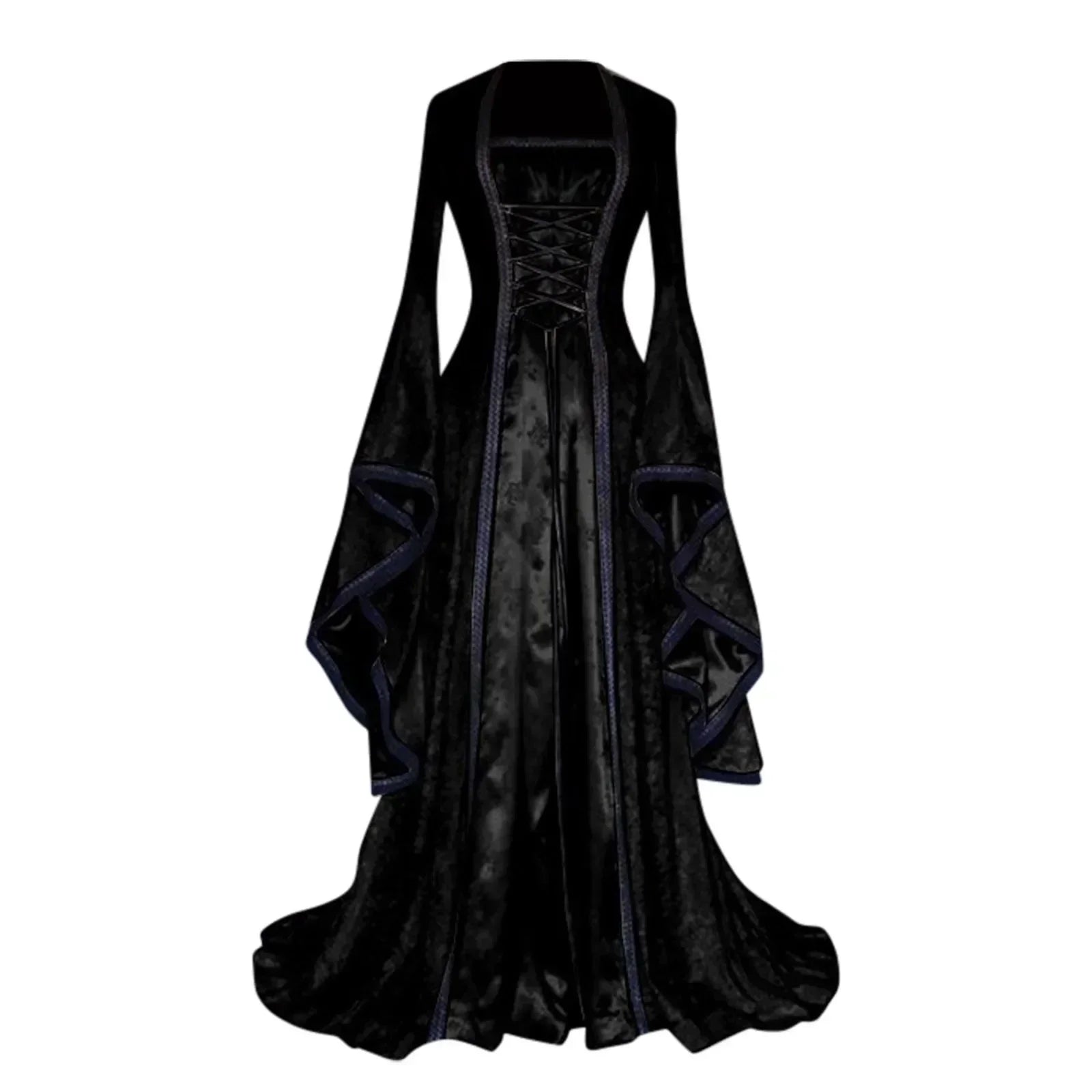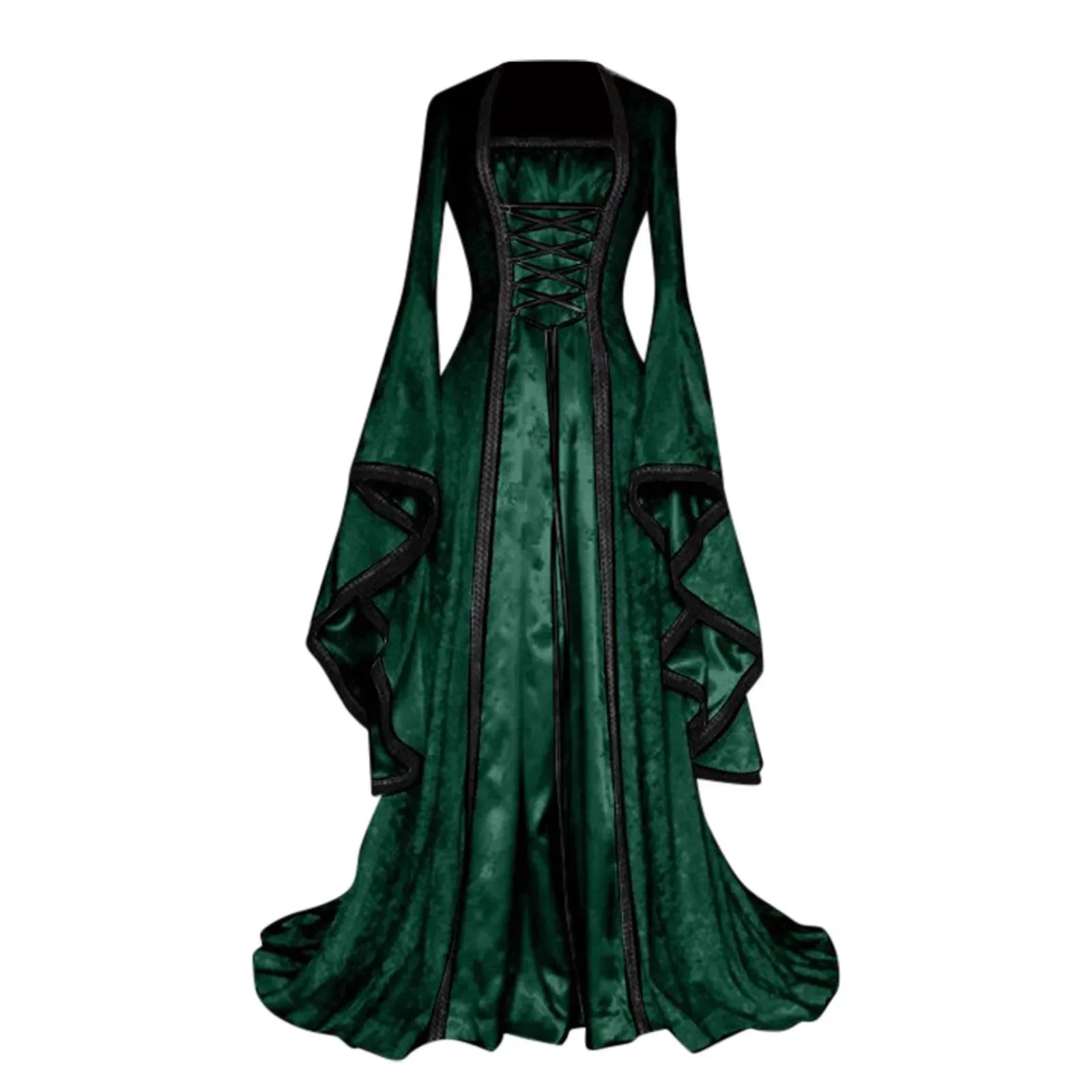 Dworska sukienka z szerokimi rękawami. Idealna na Halloween, bal tematyczny lub imprezę cosplay. Elegancki, vintage styl inspirowany średniowieczem i renesansem. Wyróżnij się magicznym wyglądem! Dostępna w różnych rozmiarach.